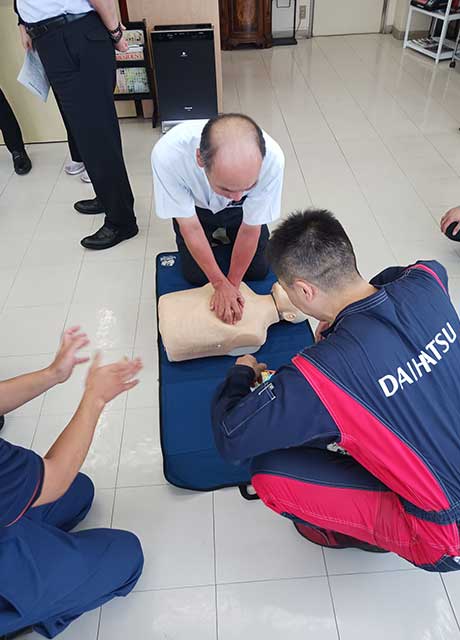 AED使用方法や心肺蘇生法などの救急救命講習を受講しました。店内にAEDを備える以上、真に地域の安心に寄与するには、適切に使用できる力を身につけておくことが不可欠であり、今後も定期的に講習を重ねてまいります。